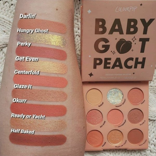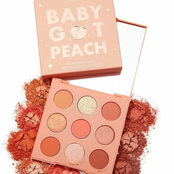 Paleta de 9 tonos durazno, que combina tonos mate, shimmer y glitter.